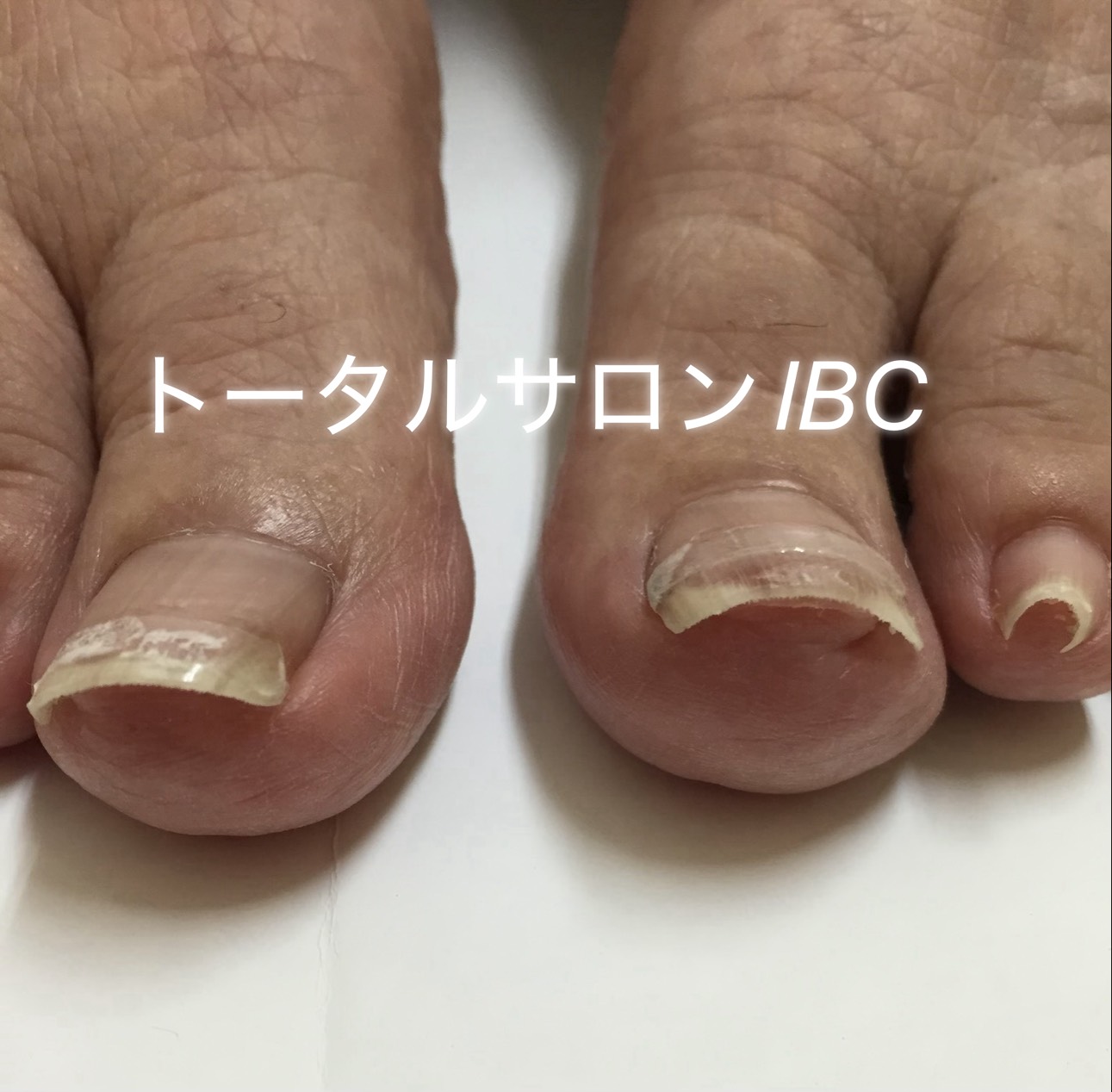 ドイツ製のグラスファイバーのシートを爪に装着し、張力により爪を持ち上げ、爪が内側に生えていこうとするのを防ぐ矯正法B/Sブレイスクイックを使用。